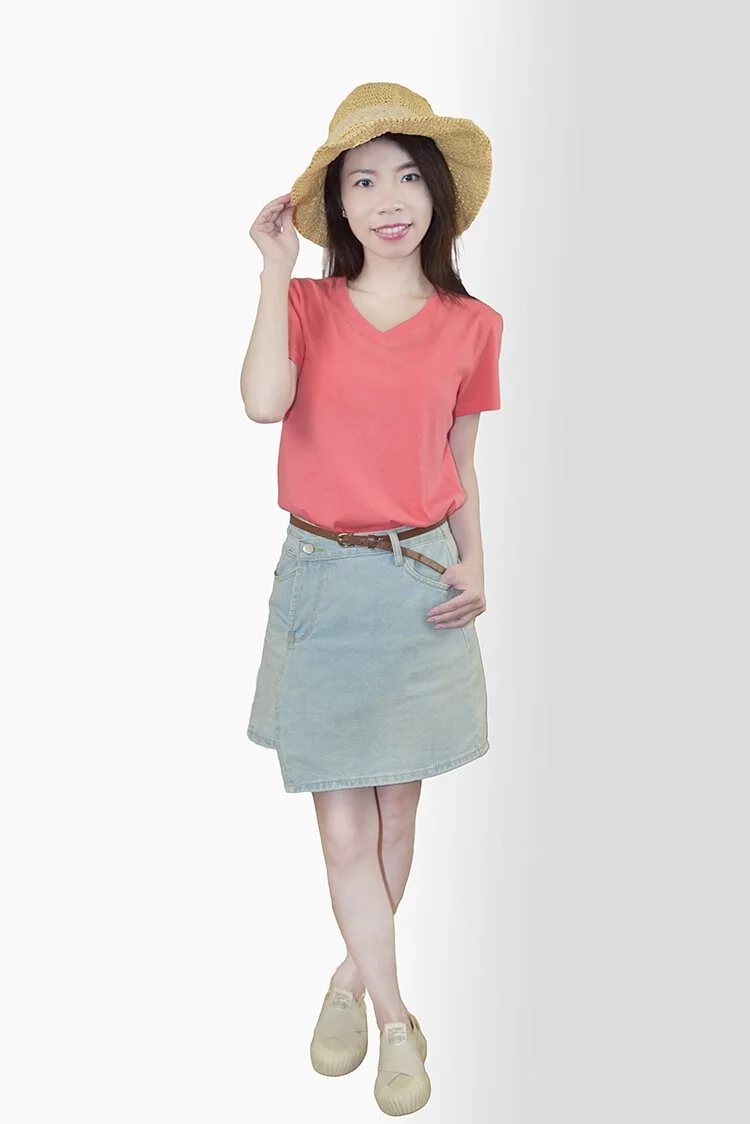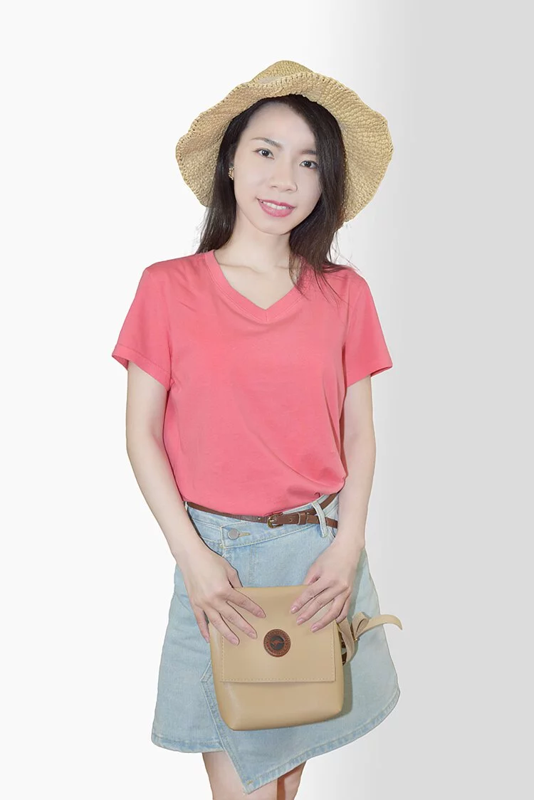 MIT V領素TEE (玫瑰紅)