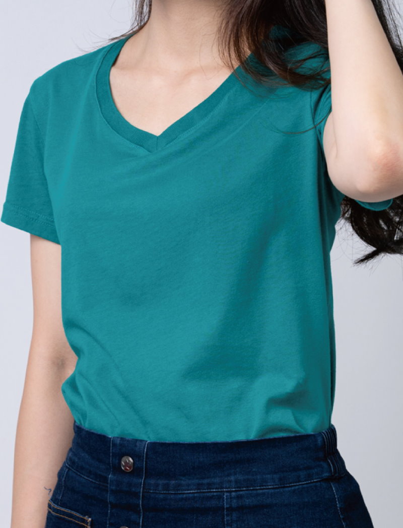 MIT V領素TEE (寶石綠)